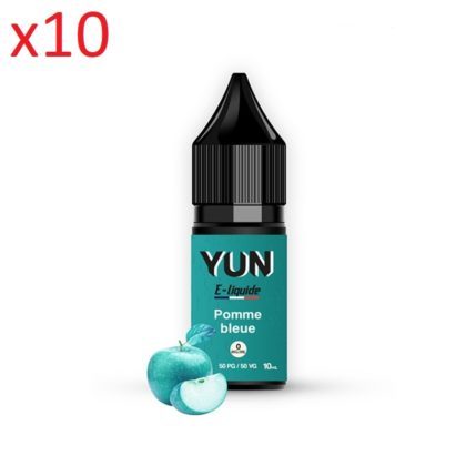 10 flacons E-liquide YUN Pomme bleue 10mL, 12 mg/ml.