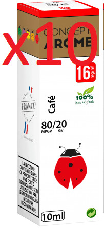 10 flacons e-liquides concept arome café 16 mg de nicotine