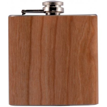 Flasque 180ml métal argenté décor bois.