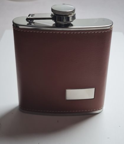 Flasque 180 ml Chromé gainé cuir marron