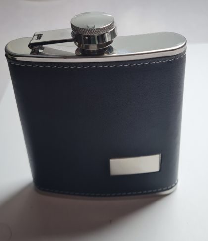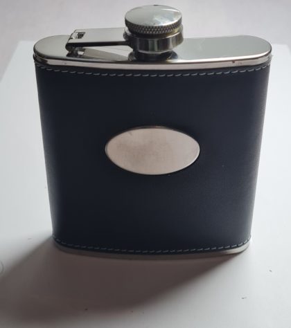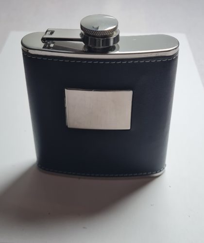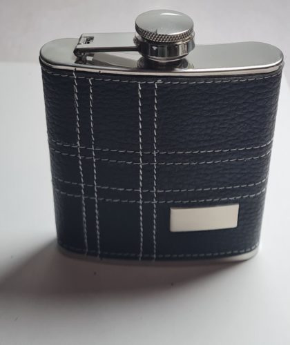 Flasque 180 ml Chromé gainé cuir noir