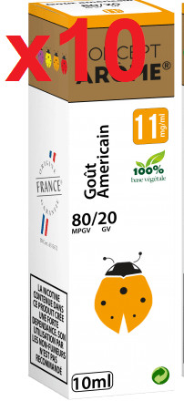 10 flacons concept arôme goût Americain 0mg de nicotine