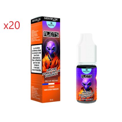 20 FLACONS SILVER CIG ALIENS PECHE FRUIT DE LA PASSION 3 MG