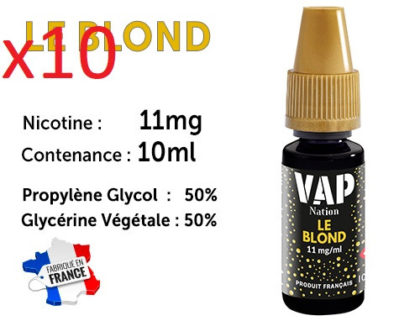 10 flacons e-liquides Vap Nation le blond 11mg/ml de nicotine