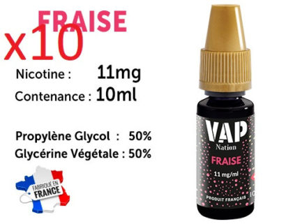 10 flacons e-liquides Vap Nation fraise 11mg/ml de nicotine