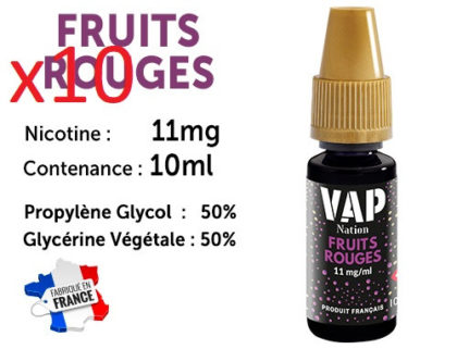 10 flacons e-liquides Vap Nation fruits rouges 11mg/ml de nicotine