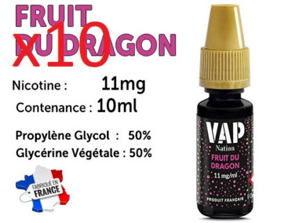 10 flacons e-liquides Vap Nation fruit du dragon 11mg/ml de nicotine