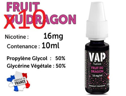 10 flacons e-liquides Vap nation fruit du dragon 16mg/ml de nicotine