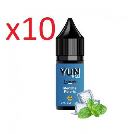 10 flacons, E-liquide YUN Salt Menthe Polaris 10mL,20mg/ml, 50/50.