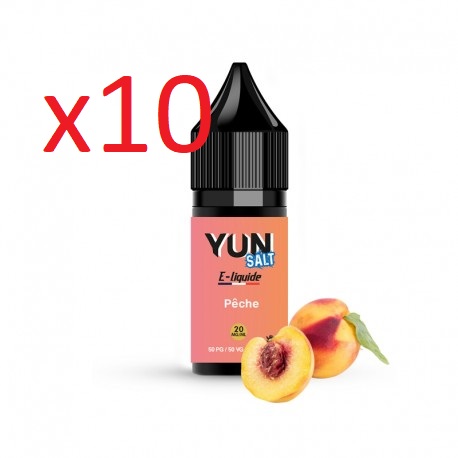 10 flacons, E-liquide YUN Salt pêche 10mL,10mg/ml, 50/50.
