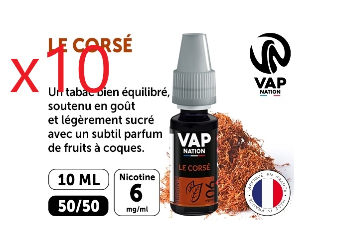 10 flacons VAP NATION 10ml TABAC CORSE 6 MG