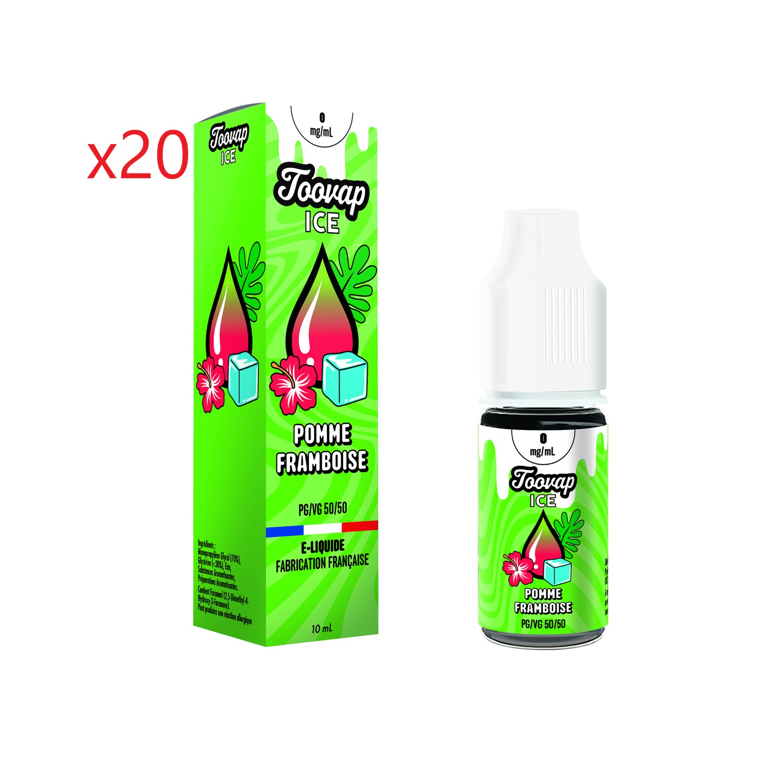 20 flacons E-liquide TOOVAP ice pomme framboise 0mg/ml de nicotine, 50/50