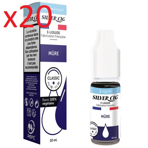 20 flacons Silver cig Goût mûre 3 de nicotine PG 70- VG 30