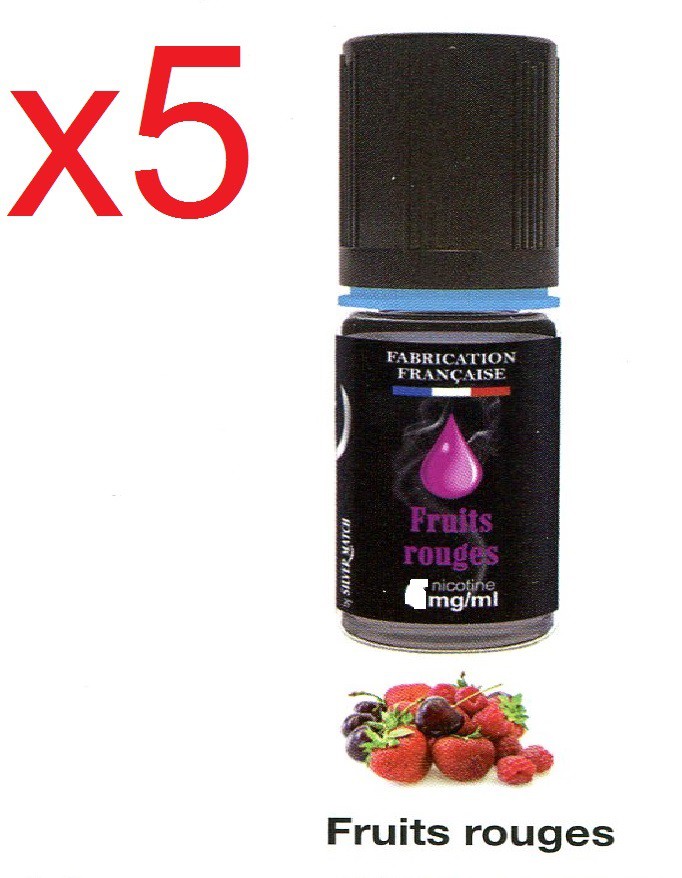5 flacons e-liquide Silver Cig goûts fruits rouge 0 mg/ml de nicotine.
