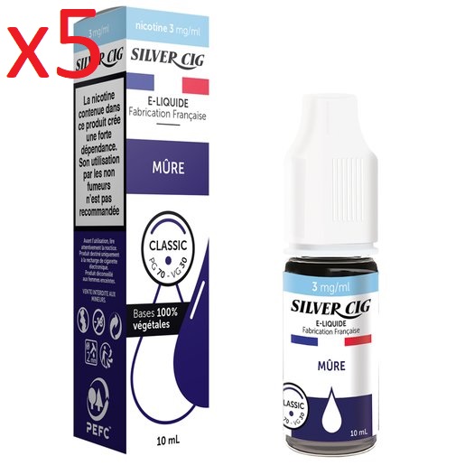5 flacons Silver cig Goût mûre 3 de nicotine PG 70- VG 30