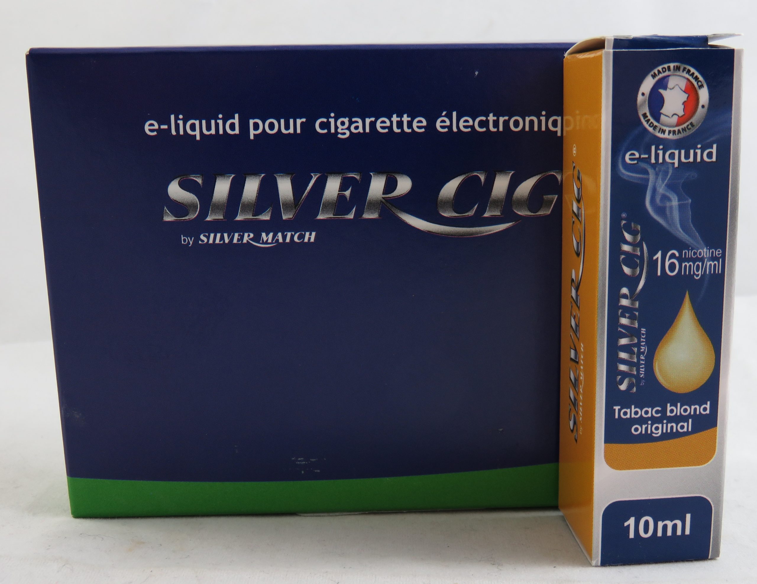Boite de 5 flacons e-liquide silver cig goût tabac blond original 16mg/ml de nicotine.