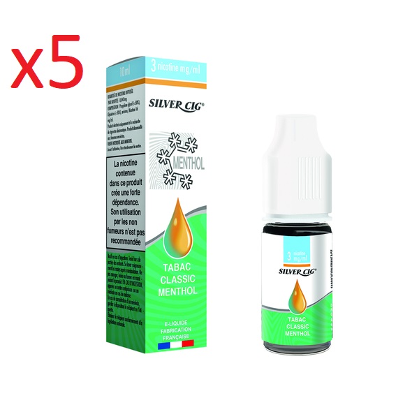 5 flacons Silver cig tabac classic menthol 3mg de nicotine.