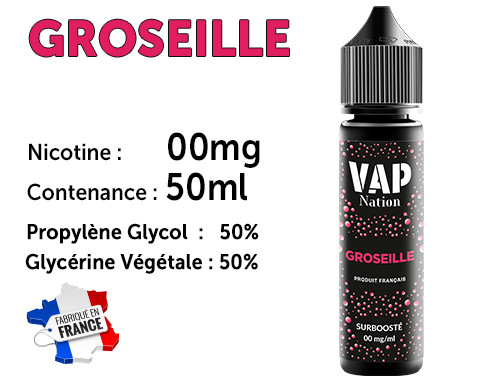 Flacon Vap nation de 50ml grosseille 0 de nicotine. 50/50