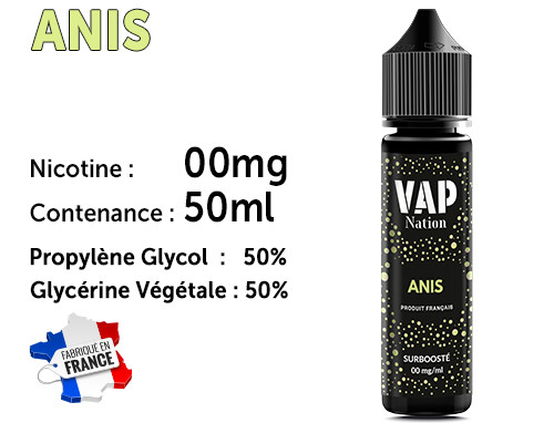 Flacon Vap nation de 50ml anis 0 de nicotine. 50/50.