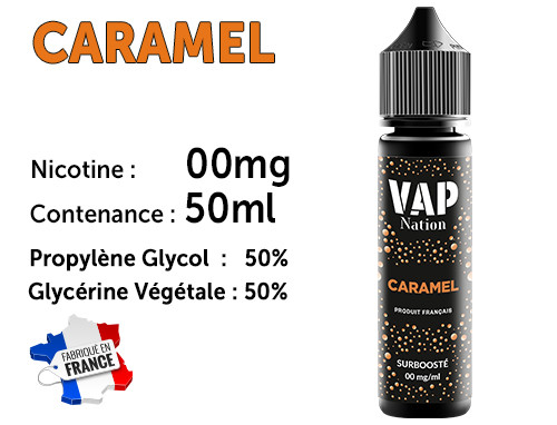Flacon Vap nation de 50ml arôme caramel 0 de nicotine. 50/50