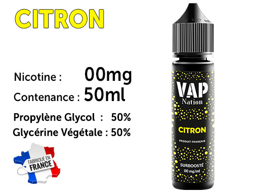 Flacon Vap nation de 50ml arôme citron 0 de nicotine. 50/50