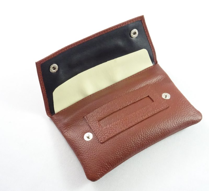 Cette blague à tabac élégante et pratique avec une poche en latex pour mettre le tabac, un emplacement pour les feuilles format standard, elle se ferme par deux bouton pression.