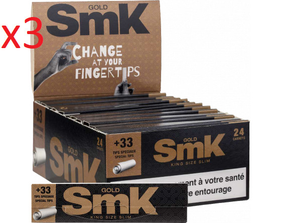 3 boites de 50 feuilles SMK gold slim.