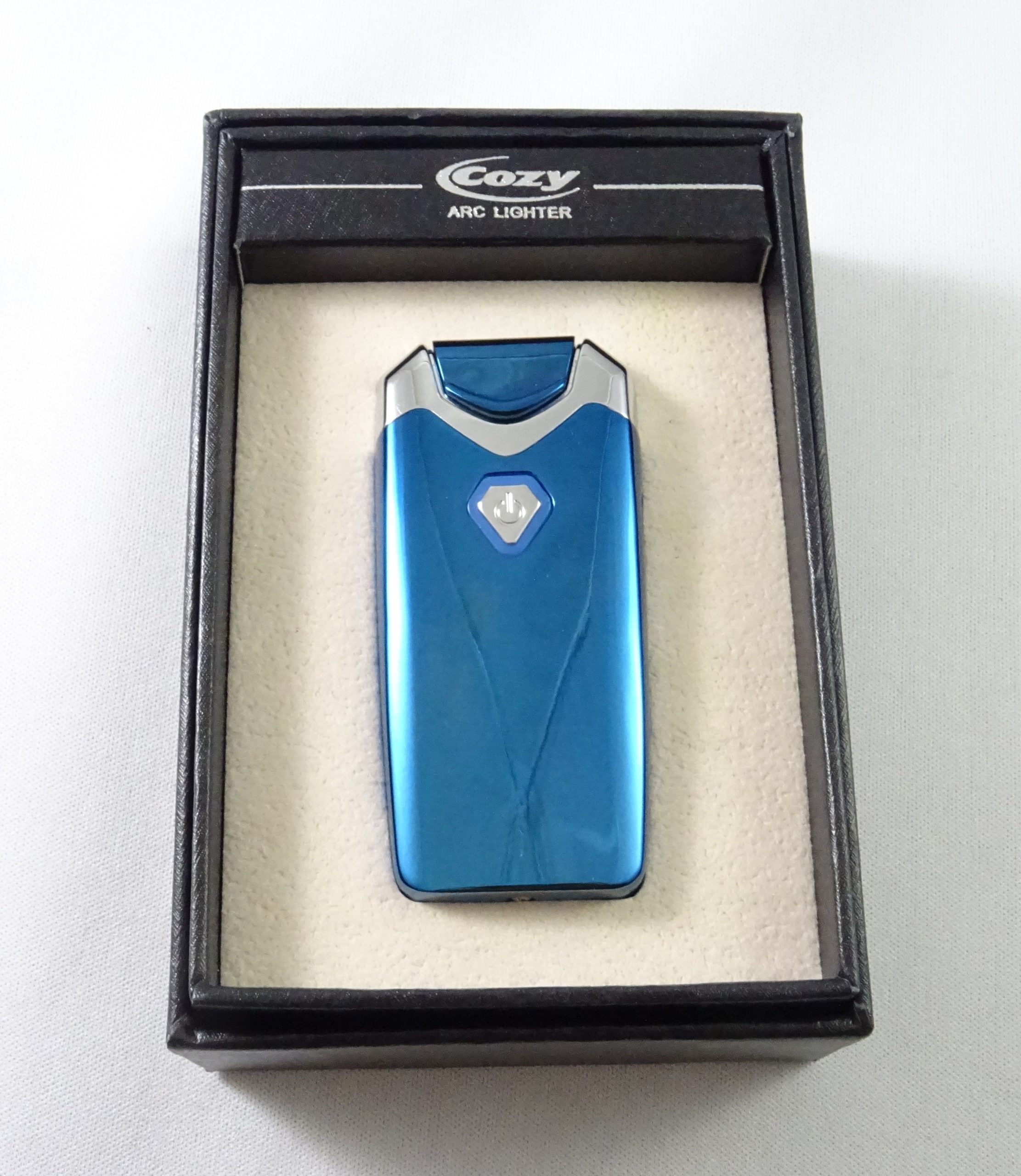 Briquet COZY arc électrique en métal bleu.