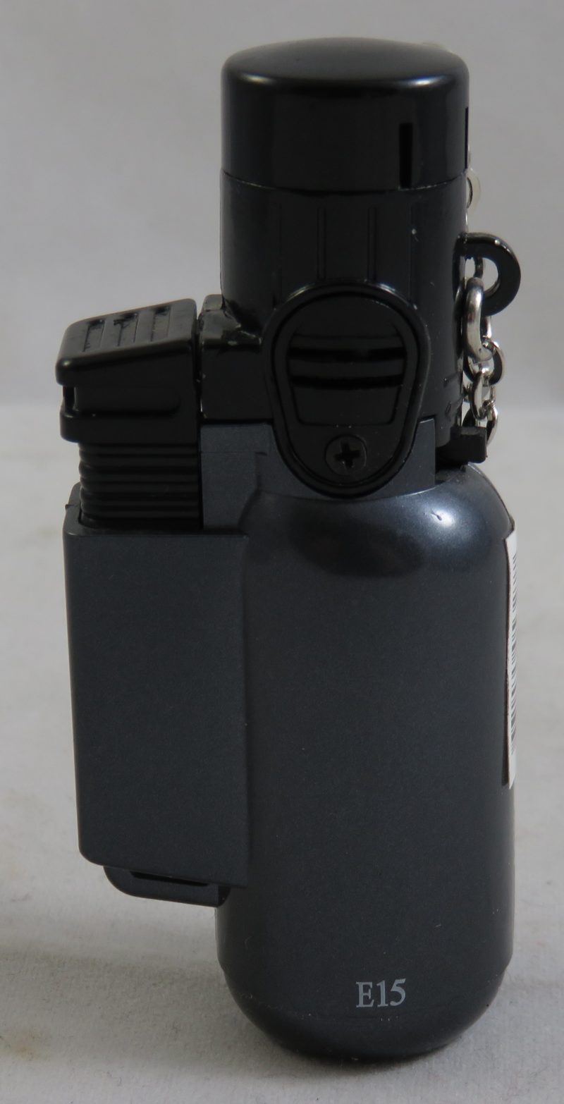 Briquet en plastique, capuchon avec chaine pour fermé le briquet, ce qui évite que des poussières pénettre, avec réglage de la flamme sur le devant, le rechargement s’éffectue dessous le briquet.