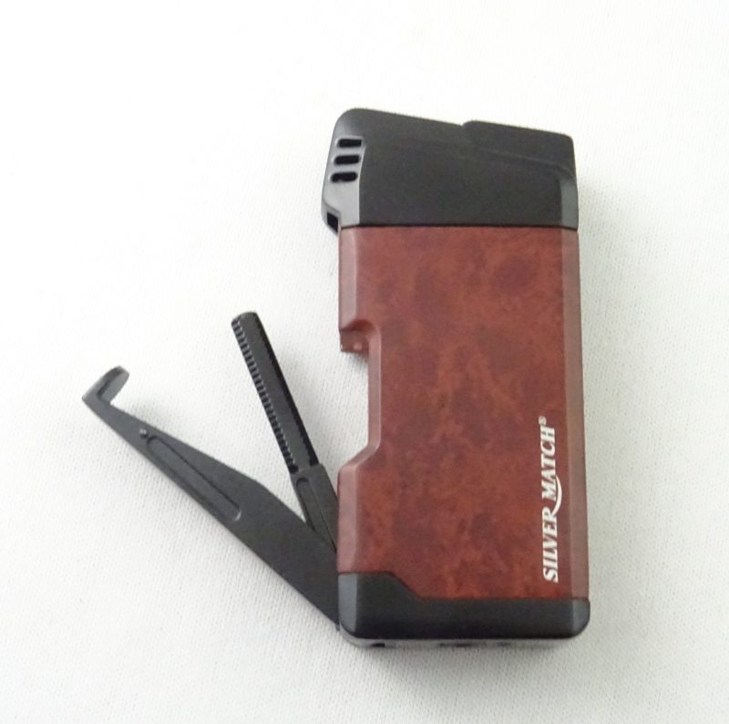 Briquet Silverf Macth spécial pour la pipe avec la flamme sur le côté et les accessoires, bourre pipe et cure pipe.