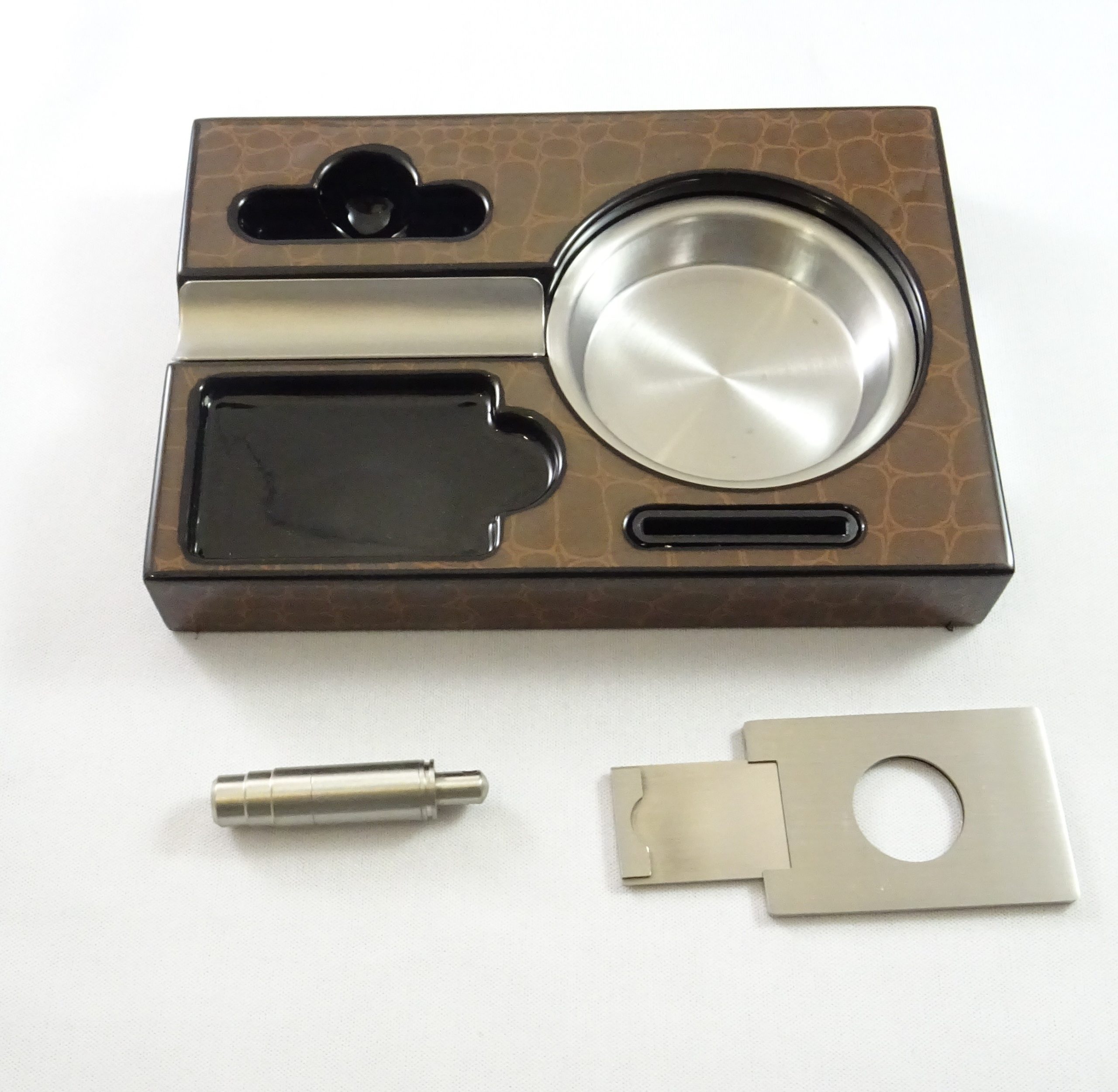 La cave à cigare est l’accessoire indispensable pour conserver vos cigares préférés, élégante, elle trouvera sa place aussi bien sur un meuble ou un bureau. Contenance 25 cigares. Elle est vendu complète avec un hygromètre et son humidificateur un séparatreur de cigares et son cendrié assorti, un emporte pièce et coupe cigare.