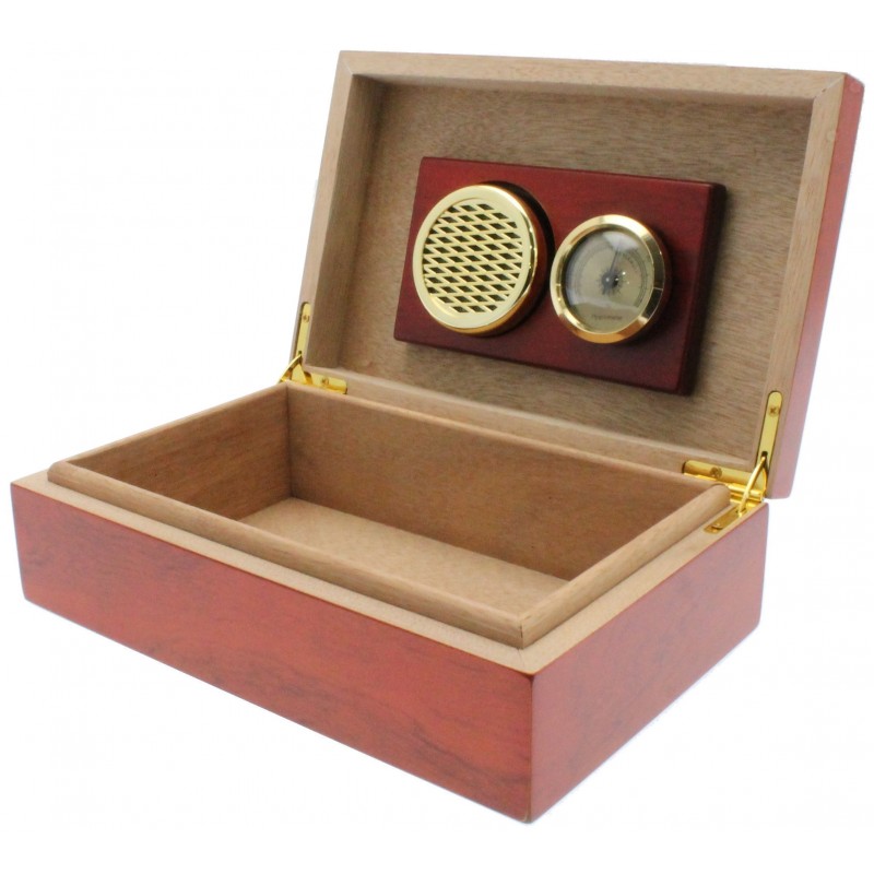 Cette cave à cigares a été conçue pour la conservation optimale et le stockage de vos cigares. En effet, l’intérieur de la cave a été fabriqué à partir de bois de cèdre espagnol. Elle dispose d’un hygromètre ainsi que d’un humidificateur afin de réguler le taux d’humidité dans la cave.