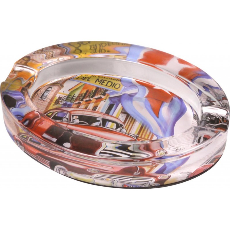 Cendrier à cigares en verre décor Cuba voiture, 20 x 15 x 3.5 cm