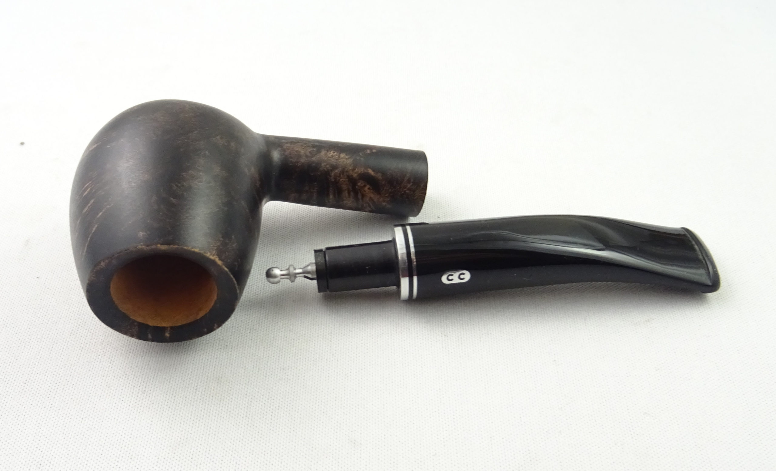 Pipe Chacom en bruyère, tuyau en acrylique double bague métal, filtre métal ou 9mm.