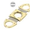 Coupe cigare double lame Chacom noir, centre damier et contour avec des vis dorés.