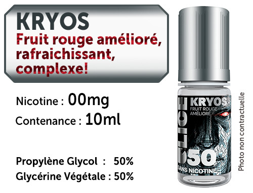 E-liquide D’LICE KRYOS 0 de nicotine, fruit rouge amélioré, rafraichissant complexe.
