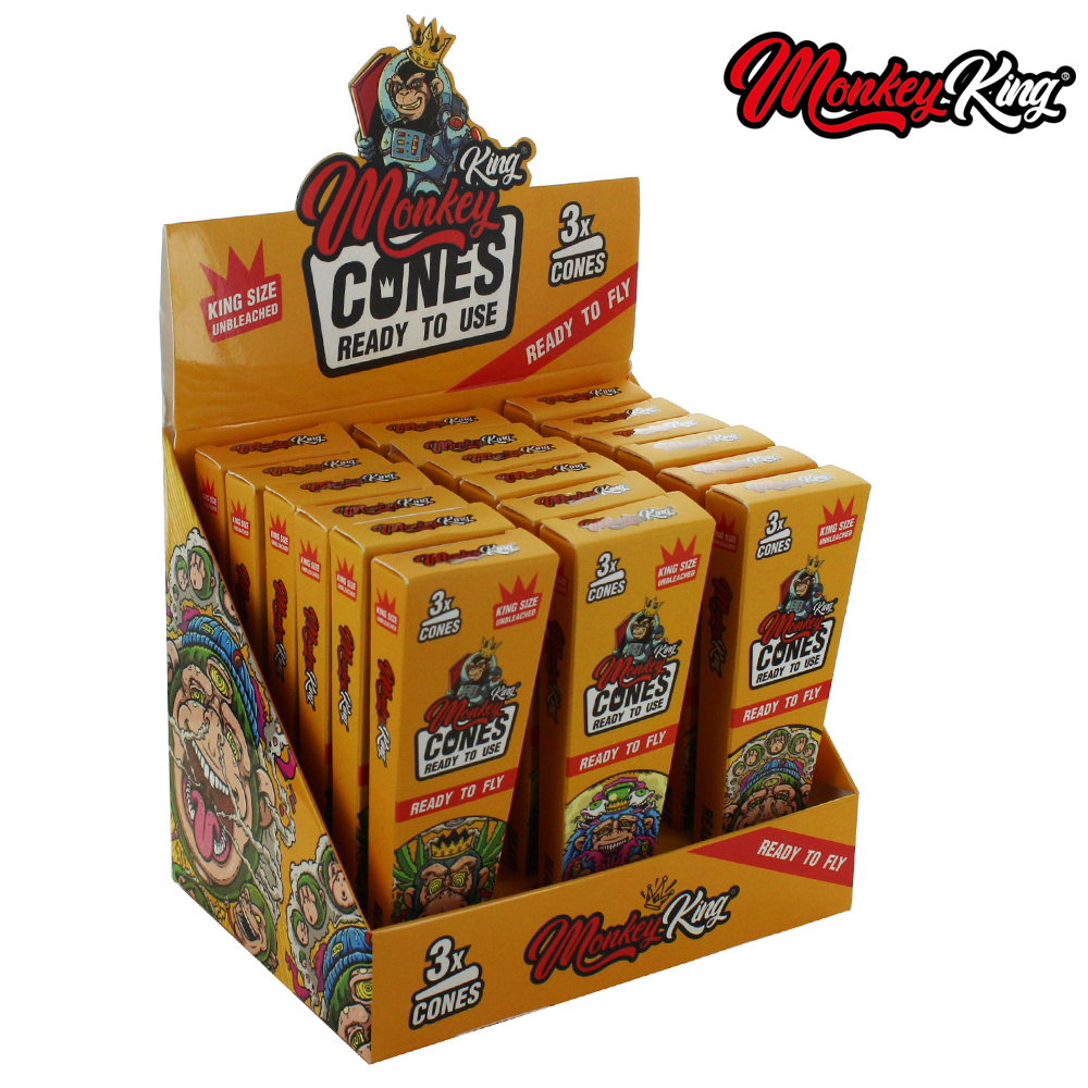 Display de 18 Paquets de Cones Pré-roulé Monkey King © Brown 110mm (3 cônes/Paquet)