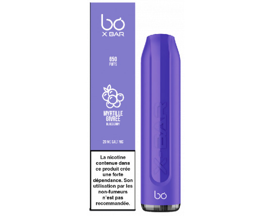 E-cig jetable X-BAR goût Myrtille givrée 10mg de nicotine.