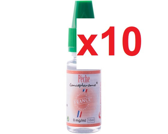 10x E-liquide goût pêche 0 mg de nicotine. Soit 2€30 le flacon.