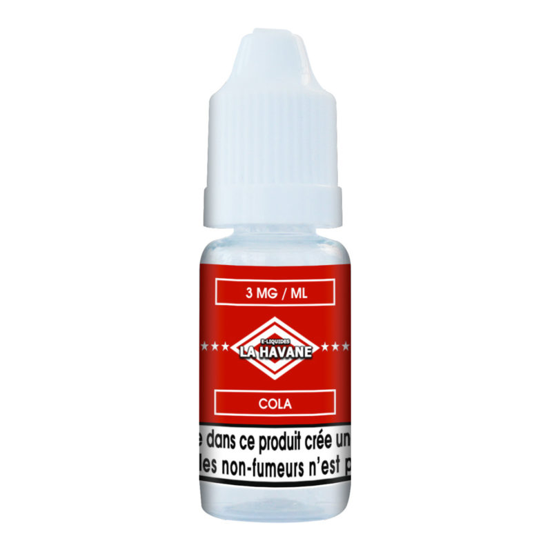 20 flacons e-liquides la Havane goût cola 3mg/ml de nicotine, propylène glycol 70%/glycérine végétale 30%