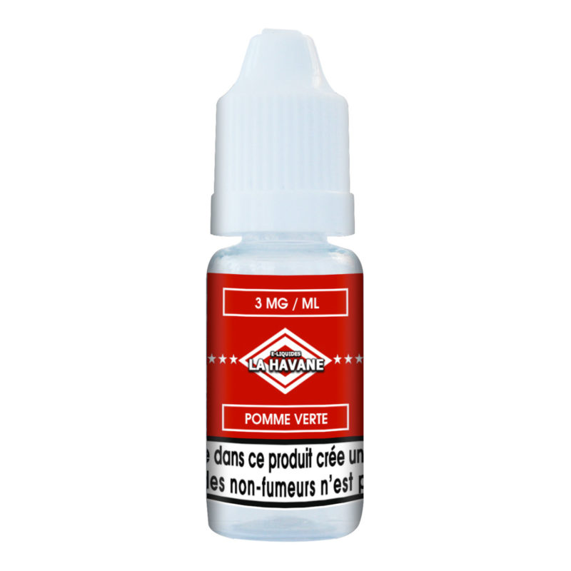 20 flacons e-liquides la Havane goût pomme verte 3mg/ml de nicotine, propylène glycol 70%/glycérine végétale 30%