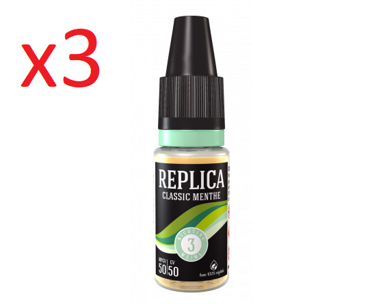 3 flacons E-liquide REPLICA CLASSIC MENTHE 50/50 3mg/ml de nicotine