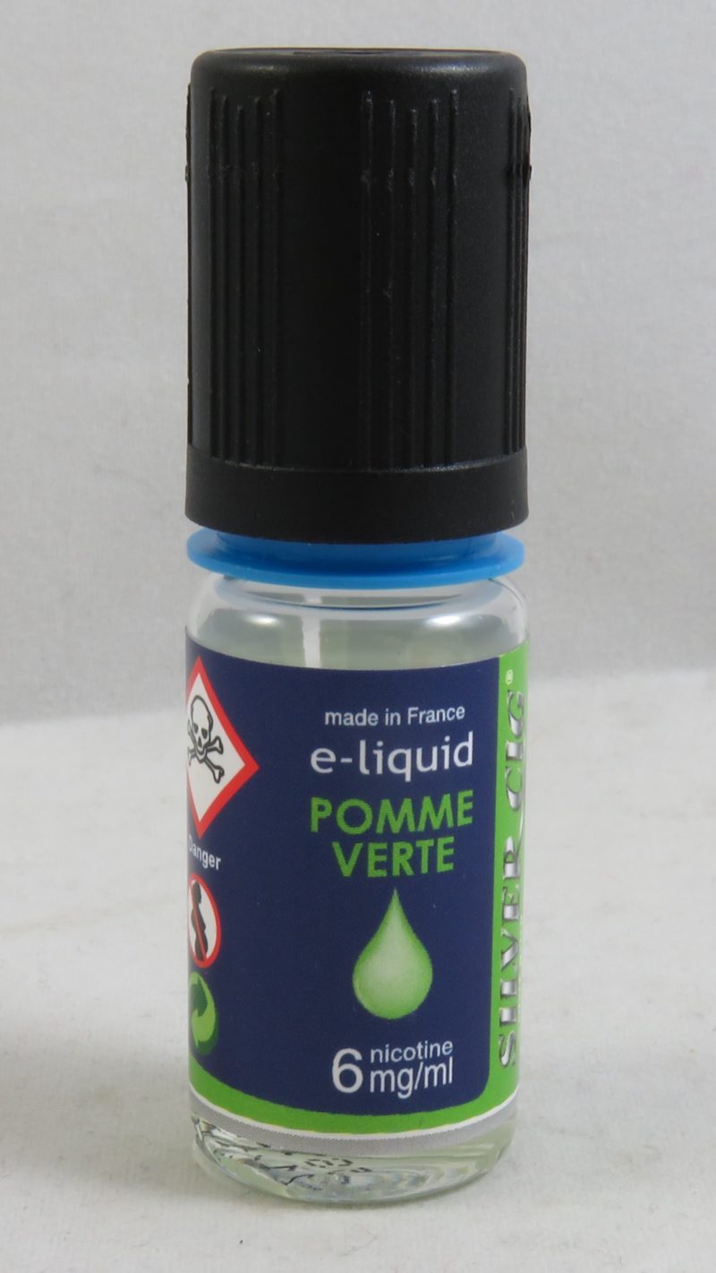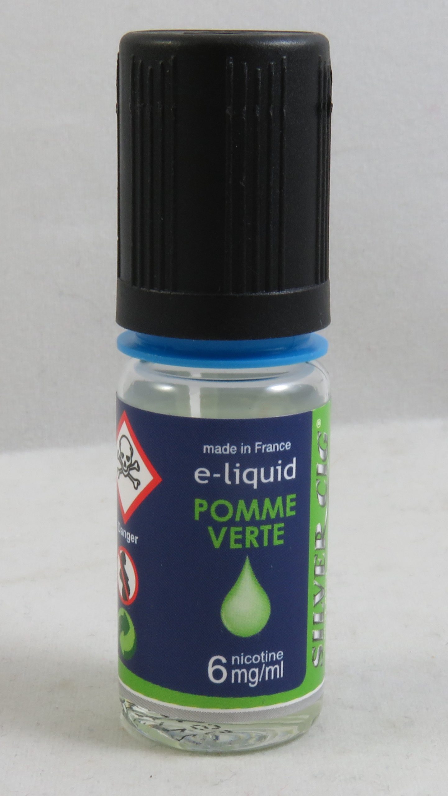 E-lquide silver cig by silver match goût pomme nicotine 6 mg en flacon de 10 mg.