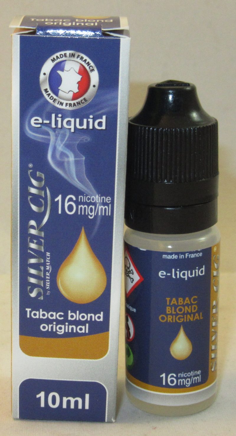 E-liquide silver cig tabac blond original 16 mg de nicotine.