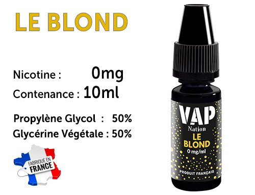 E-liquide Vap nation le blond 0 nicotine, 50/50. Tabac blond classic leger qui vous rapellera la rouge et blanche bien connu