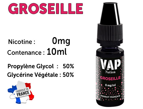 E-liquide Vap nation groseille 0 nicotine, 50/50.