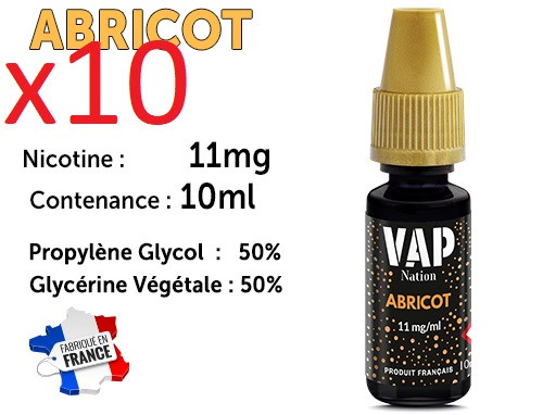 10 flacons e-liquides Vap Nation abricot 11mg/ml de nicotine.