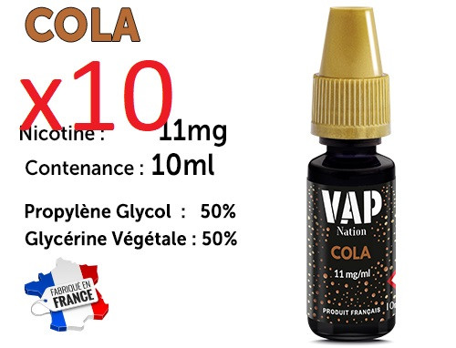 10 flacons e-liquides Vap Nation cola 11mg/ml de nicotine.
