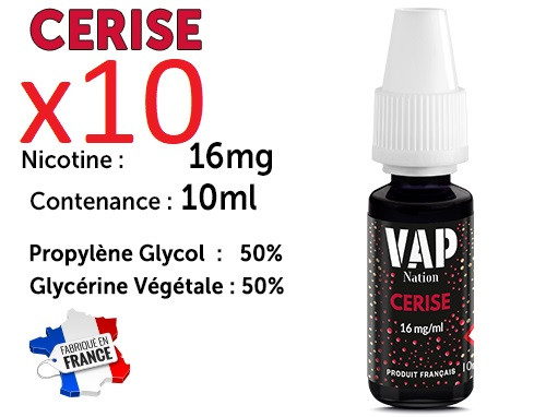 10 flacons e-liquides Vap nation cerise 16mg/ml de nicotine. 50/50