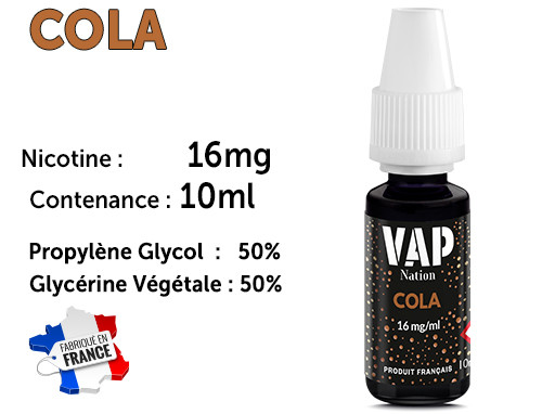 Flacon e-liquide Vap nation cola 16mg/ml de nicotine. 50/50